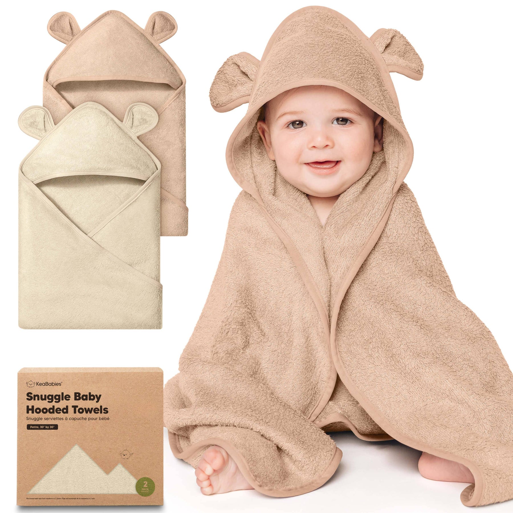 Wrap your newborn in softness with KeaBabies 2-Pack Snuggle Baby Hooded Towels. Crafted from plush 500GSM viscose from bamboo, these adorable bear ears bath towels absorb quickly, dry fast, and keep your infant warm and cozy as they grow up to age 5. - Premium 500GSM viscose from bamboo baby bath towel, soft and gentle on baby's sensitive skin. - Quick-dry & super absorbent hooded baby towels keep newborns cozy. Versatile for bath, pool, beach and travel. - Cute bear ears and neutral colors, perfect baby registry gift for boys & girls. - Toddlers towels are made durable for machine wash and dryable. Stays soft after washes. - Comes in 2-pack, available in 30x30" & 35x35". For newborns up to age 5.