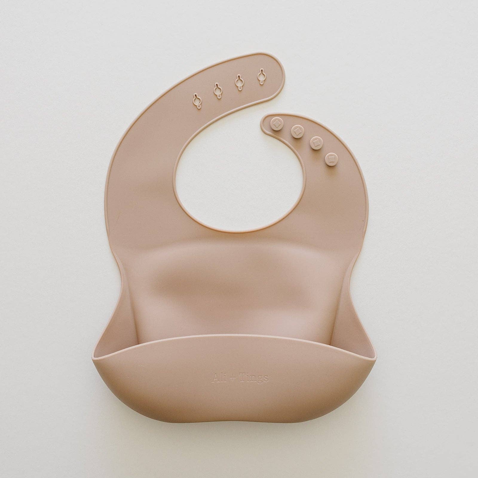 Save time cleaning up messy mealtimes with Ali + Tings' pure silicone baby bibs. With a large, sturdy pocket for catching spills and rejects, these bibs are a game changer. Made from 100% safe and durable food-grade platinum silicone, they're free from harmful chemicals and smells. Choose from a variety of earthy tones and patterns. Recommended for ages 4 months+. Measures 11.7 x 9 x 1.8 inches (LxWxH). Just wash with warm, soapy water or toss in the dishwasher for easy cleaning. Goodbye, mealtime mess!
