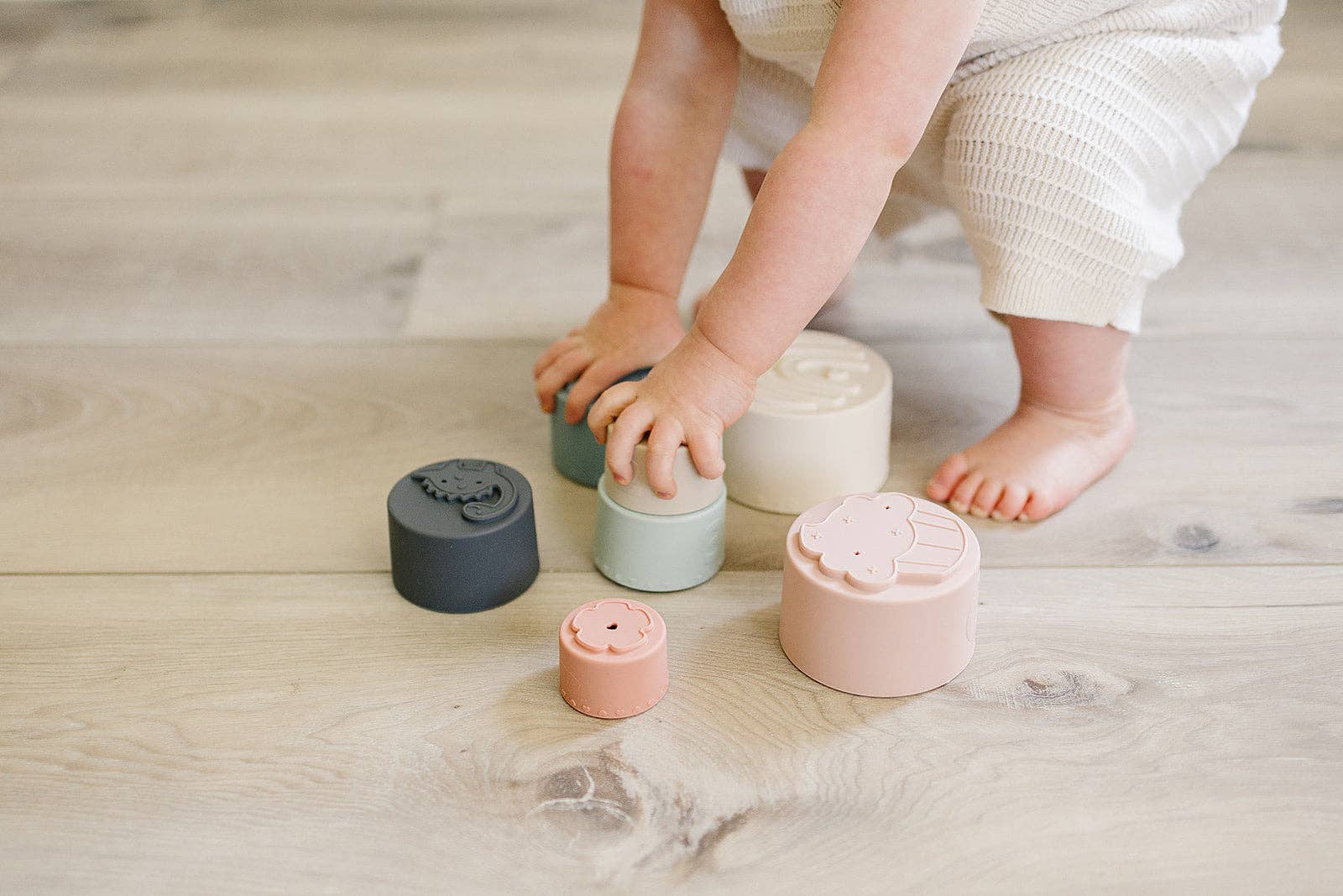 Let your little one play, chew, and scoop away with our adorable stacking cups featuring textured patterns and numbers. Sturdy, silicone design allows for endless fun while learning hand-eye coordination, problem-solving, and fine motor skills. Let the counting adventures begin! Get ready to stack, tumble, and tear down with these fun Stacking Cups! Perfect for teaching your little one numbers 1-7, while also developing their sensory and cause and effect skills. Don't just settle for basic learning toys, add some excitement to your baby's playtime.