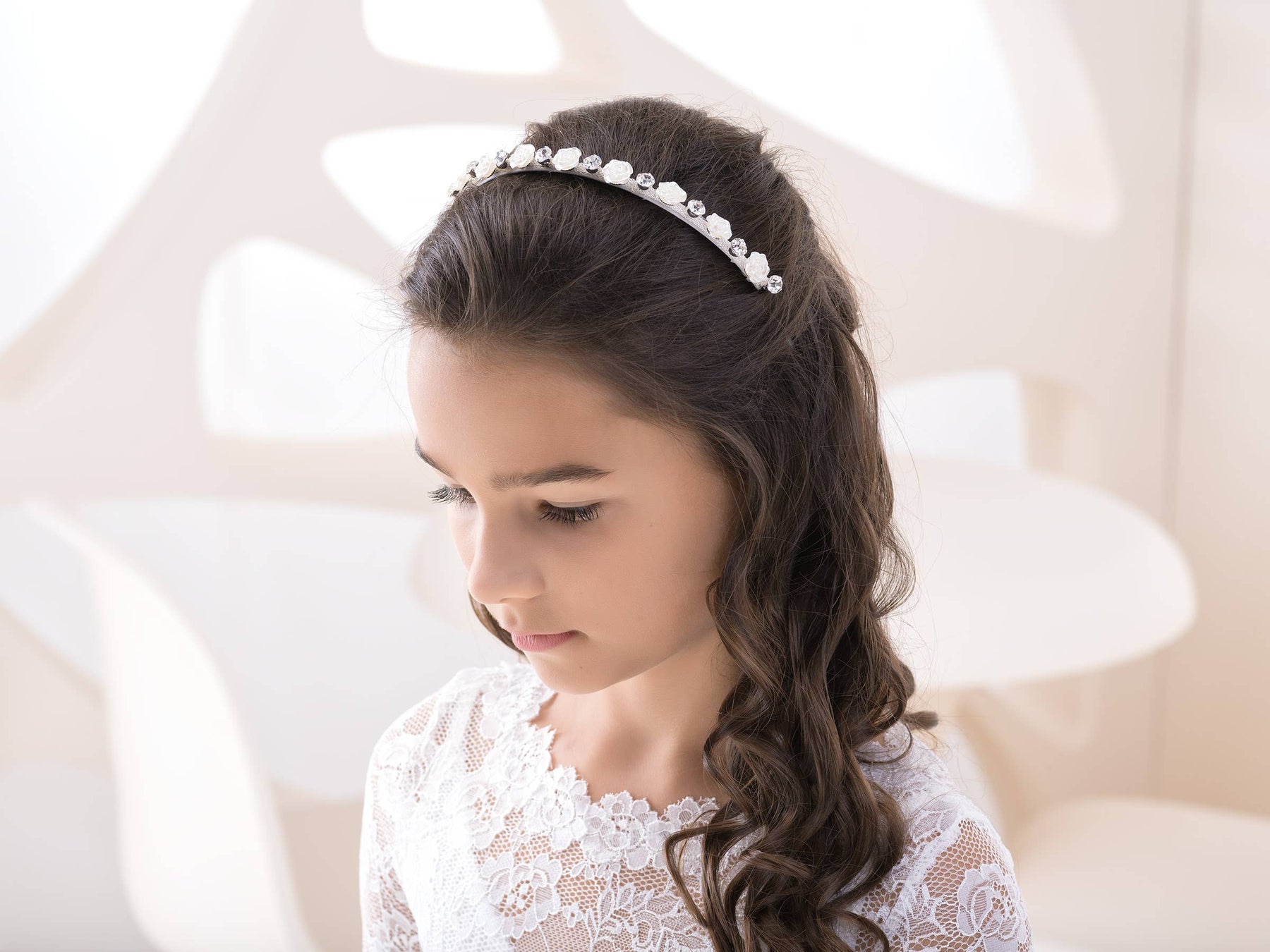 Communion Headband W216 - Roses + Rhinestones